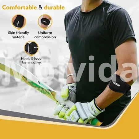 The AGARO Tennis Elbow Support provides superior comfort and pain relief for individuals suffering from elbow strain, tendonitis, or muscle fatigue. Its compression pad applies targeted pressure to reduce discomfort and enhance muscle performance. Made from durable, skin-friendly materials, the brace is lightweight, flexible, and suitable for everyday use in sports, work, or rehabilitation.