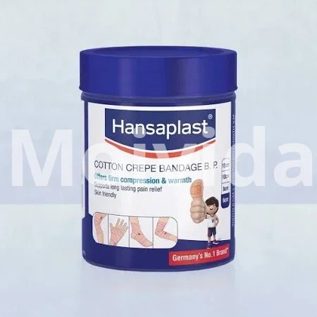 The Hansaplast Cotton Crepe Bandage B.P. 6cm x 4m is crafted from high-grade cotton and elastic fibers that deliver the perfect balance of compression and comfort. Designed as per British Pharmacopoeia (B.P.) standards, this bandage provides optimum support to the injured area, reduces swelling, and accelerates recovery. Its soft, breathable texture allows for long-term wear without discomfort, making it an essential item in every medical kit.