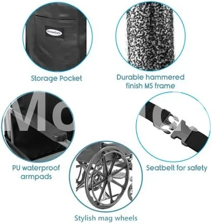 • Dual Function: Serves as both a commode chair and a self-propelling wheelchair.
