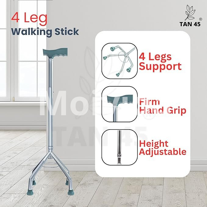 Walk with confidence using the TAN45 4-Leg Quadripod Walking Stick — a dependable, lightweight aluminium walking aid designed for safety and independence. With adjustable height, anti-slip base, and ergonomic design, it’s the perfect solution for seniors and patients recovering from injuries or surgery.
